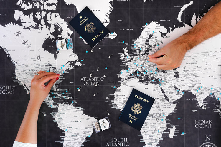 Push Pin World Travel Map - 3 Panel