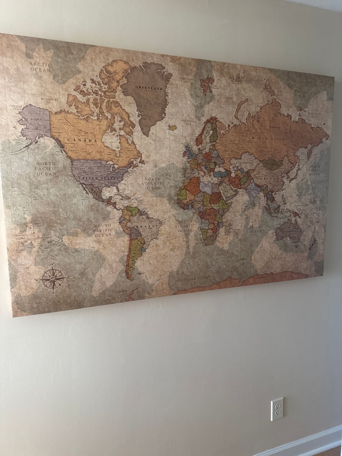For her birthday, my wife asked for a map where she can placed a pin to show places we traveled to with our kids. She was so happy this is the map she got because it is exactly what she wanted. I am happy with how easy it was to purchase with customization and also the communication was wonderful. Fast shipment also a bonus!