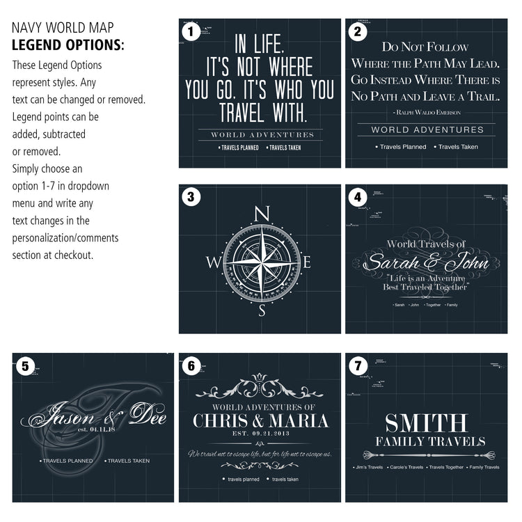 The map can be fully customized. Choose from the quote & legend options shown. Type your custom text in the “Personalize Your Canvas’ field.