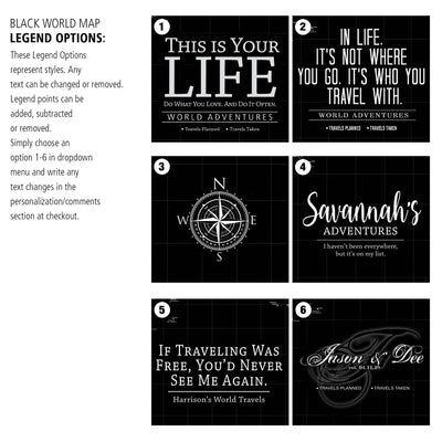 We are so happy with how our customized wall map has turned out, and I just love looking at it each and every day! This has been something we've wanted for years, as we used to have a cheap paper map of the world hanging on our wall with pins in it at our previous house. Finally, we decided to order something nicer, and we opted for the framed version as well. It is everything we wanted and more! This particular map has spots to mark off continents visited, as well as a country counter on the bottom. Super fast shipping, amazing customer service, and wonderful quality. I especially loved being able to personalize it with words and details meaningful to our family. I would not hesitate to recommend this company and this map to anyone who may be considering a purchase. It looks so nice on our wall, and is a fun way to track our travels as well as plan for upcoming adventures. I am so very happy with this purchase!
