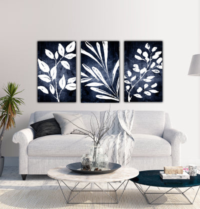 Our Gallery Wrapped Botanical Leaves and Branches on Canvas make a great addition to your walls for a clean, simplistic touch of nature. Prints are available in sizes from 14 to 30 inches wide! Choose an individual print or a set up to 6. Available in contemporary farmhouse colors with white on Indigo Blue or Black backgrounds; Black option has a touch of taupe in background. Custom colors are available by request.