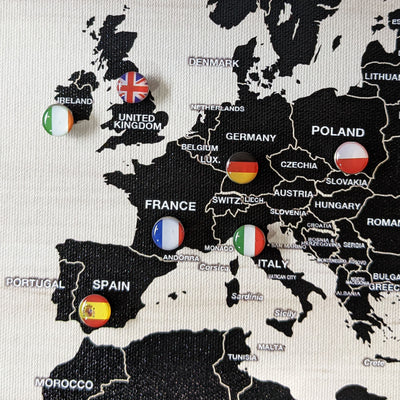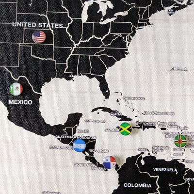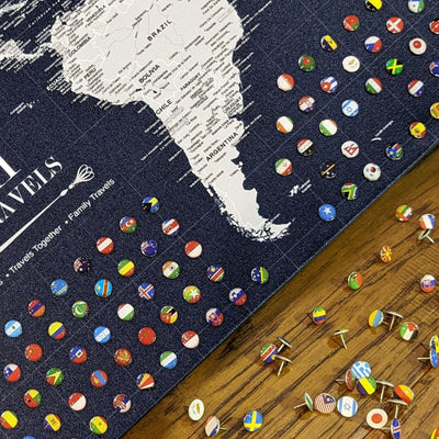 I use my map, the metal motorcycle, and colored, plastic pins to show my travels around the USA. My map is a focal point in our living space and I love the way folks are drawn to it and how it promotes conversations! I love my Holy Cow Map!!