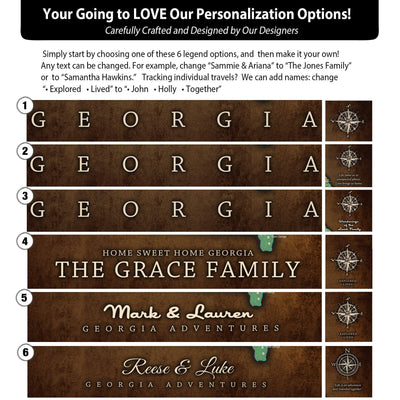 The map can be fully customized. Choose from the quote & legend options shown. Type your custom text in the “Personalize Your Canvas” field.