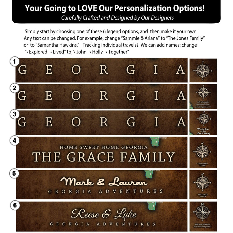 We want you to be 100% happy with your map. All custom map panels will be proofed out before printing. We will use our design expertise and work with your suggestions to create your masterpiece. There is no Character Limit on text; however, use example as your guide. Font size will be adjusted accordingly. Proofs are generally sent out 1-2 days after order is placed so please be watching for proof to avoid delays. We will NOT print until you approve your customized map.