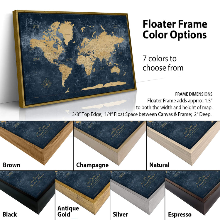 We are so happy with how our customized wall map has turned out, and I just love looking at it each and every day! This has been something we've wanted for years, as we used to have a cheap paper map of the world hanging on our wall with pins in it at our previous house. Finally, we decided to order something nicer, and we opted for the framed version as well. It is everything we wanted and more! This particular map has spots to mark off continents visited, as well as a country counter on the bottom. Super fast shipping, amazing customer service, and wonderful quality. I especially loved being able to personalize it with words and details meaningful to our family. I would not hesitate to recommend this company and this map to anyone who may be considering a purchase. It looks so nice on our wall, and is a fun way to track our travels as well as plan for upcoming adventures. I am so very happy with this purchase!