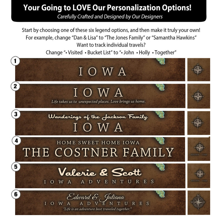 We want you to be 100% happy with your map. All custom map panels will be proofed out before printing. We will use our design expertise and work with your suggestions to create your masterpiece. There is no Character Limit on text; however, use example as your guide. Font size will be adjusted accordingly. Proofs are generally sent out 1-2 days after order is placed so please be watching for proof to avoid delays. We will NOT print until you approve your customized map.
