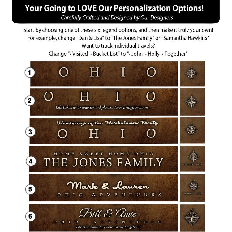 We want you to be 100% happy with your map. All custom map panels will be proofed out before printing. We will use our design expertise and work with your suggestions to create your masterpiece. There is no Character Limit on text; however, use example as your guide. Font size will be adjusted accordingly. Proofs are generally sent out 1-2 days after order is placed so please be watching for proof to avoid delays. We will NOT print until you approve your customized map.