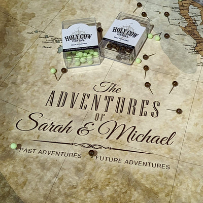 I needed a push pin map of North America to gift to our grandchildren so they can follow along on our RV journeys in the US and Canada. Tom at Holy Cow Canvas provides top notch customer service- he answered all of my questions quickly and helped me with some minor customizations. I ended up purchasing 3 canvases. The quality is great, easy to use the push pins. Time from placing the order to delivery was very fast. I highly recommend Holy Cow!