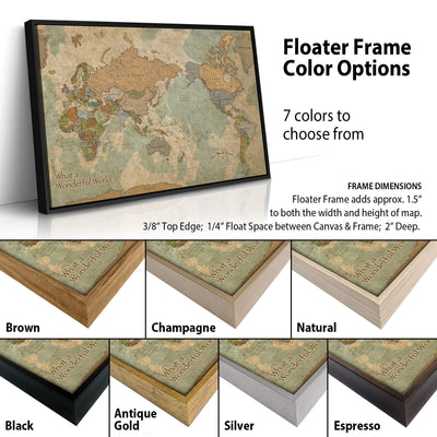 We are so happy with how our customized wall map has turned out, and I just love looking at it each and every day! This has been something we've wanted for years, as we used to have a cheap paper map of the world hanging on our wall with pins in it at our previous house. Finally, we decided to order something nicer, and we opted for the framed version as well. It is everything we wanted and more! This particular map has spots to mark off continents visited, as well as a country counter on the bottom. Super fast shipping, amazing customer service, and wonderful quality. I especially loved being able to personalize it with words and details meaningful to our family. I would not hesitate to recommend this company and this map to anyone who may be considering a purchase. It looks so nice on our wall, and is a fun way to track our travels as well as plan for upcoming adventures. I am so very happy with this purchase!
