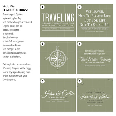 Sage Push Pin Travel Map of the World