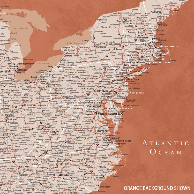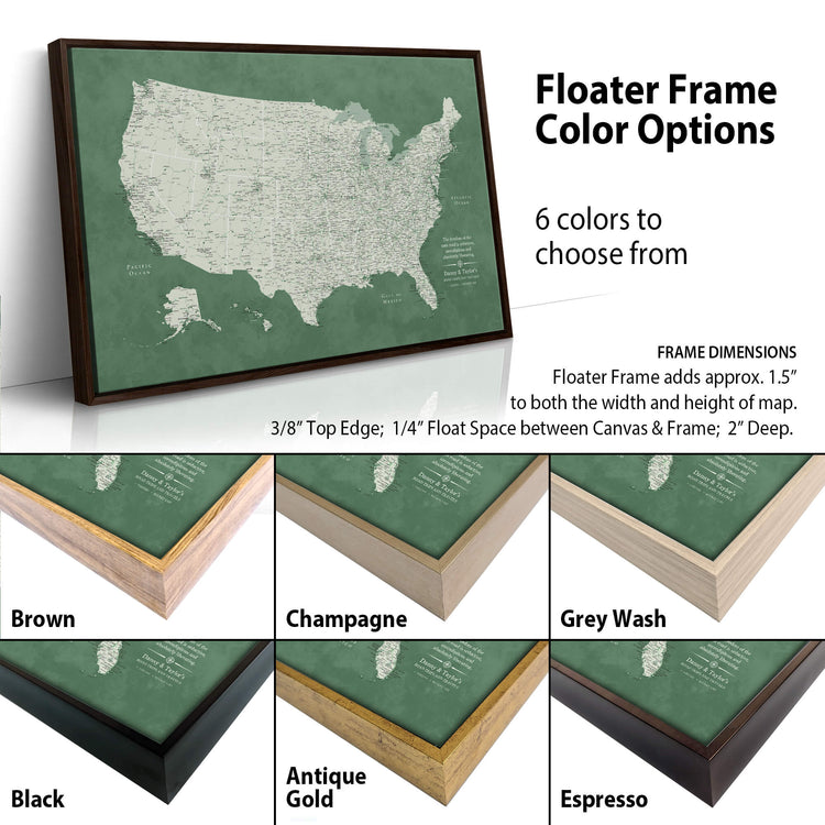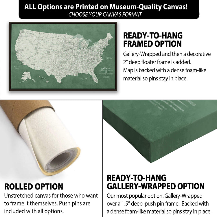 Superb clarity with excellent city details. Map is printed on a Premium Canvas. Gallery-Wrapped & Framed maps are backed with foam-like material ensures pins stay in place. Canvas hides pinholes if pins are removed and/or changed.