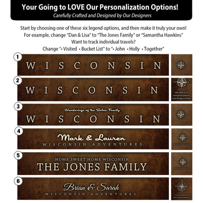 The map can be fully customized. Choose from the quote & legend options shown. Type your custom text in the “Personalize Your Canvas” field.