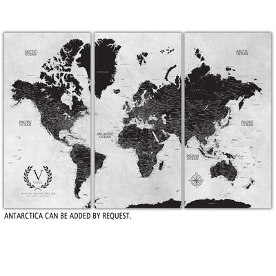 Black & White Three Panel Push Pin Map - Canvas Wall Art - HolyCowCanvas