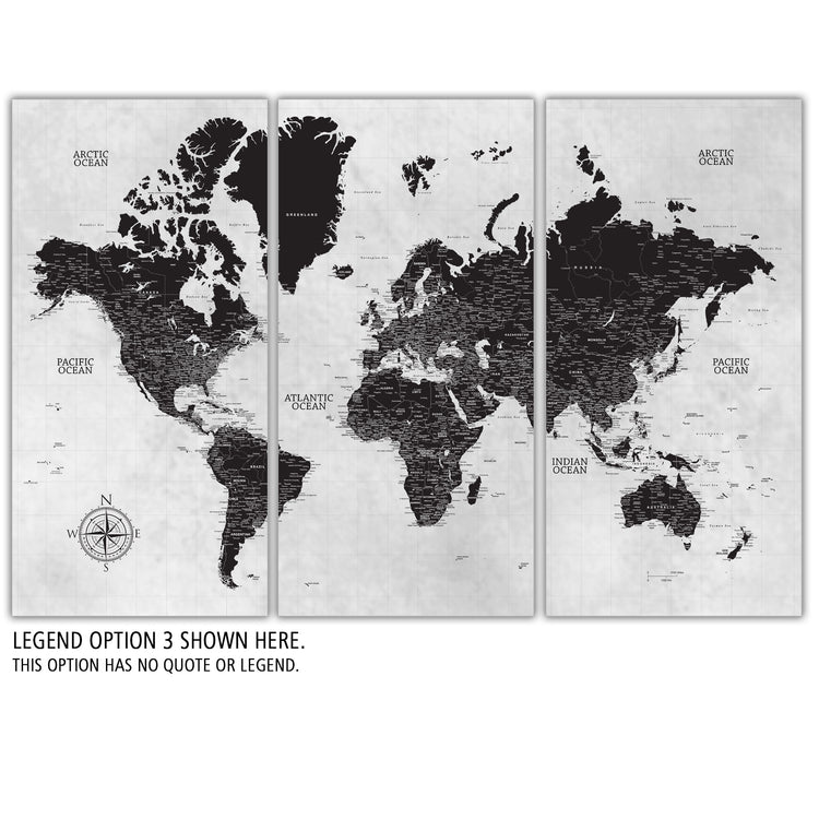 Black & White Three Panel Push Pin Map