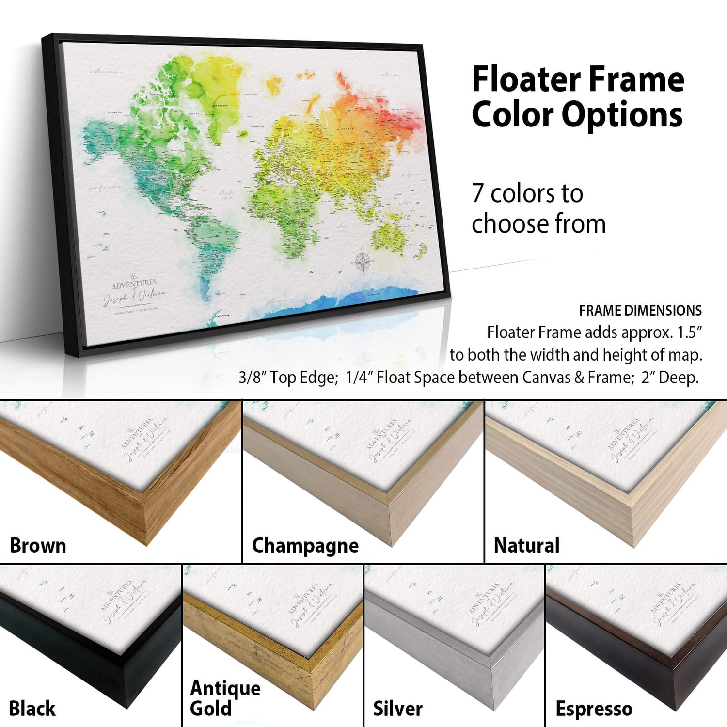 Track your world travels on this Watercolor Map and add some colorful artistic flair to your space. World map in rainbow hues on a printed textured background. Perfect for reminiscing about past adventures and planning new ones. Map can be customized with names and quotes to create a truly one-of-a-kind keepsake. Legend options can be personalized to track individual or family travels. Swipe through additional photos to see personalization options & close-up details.