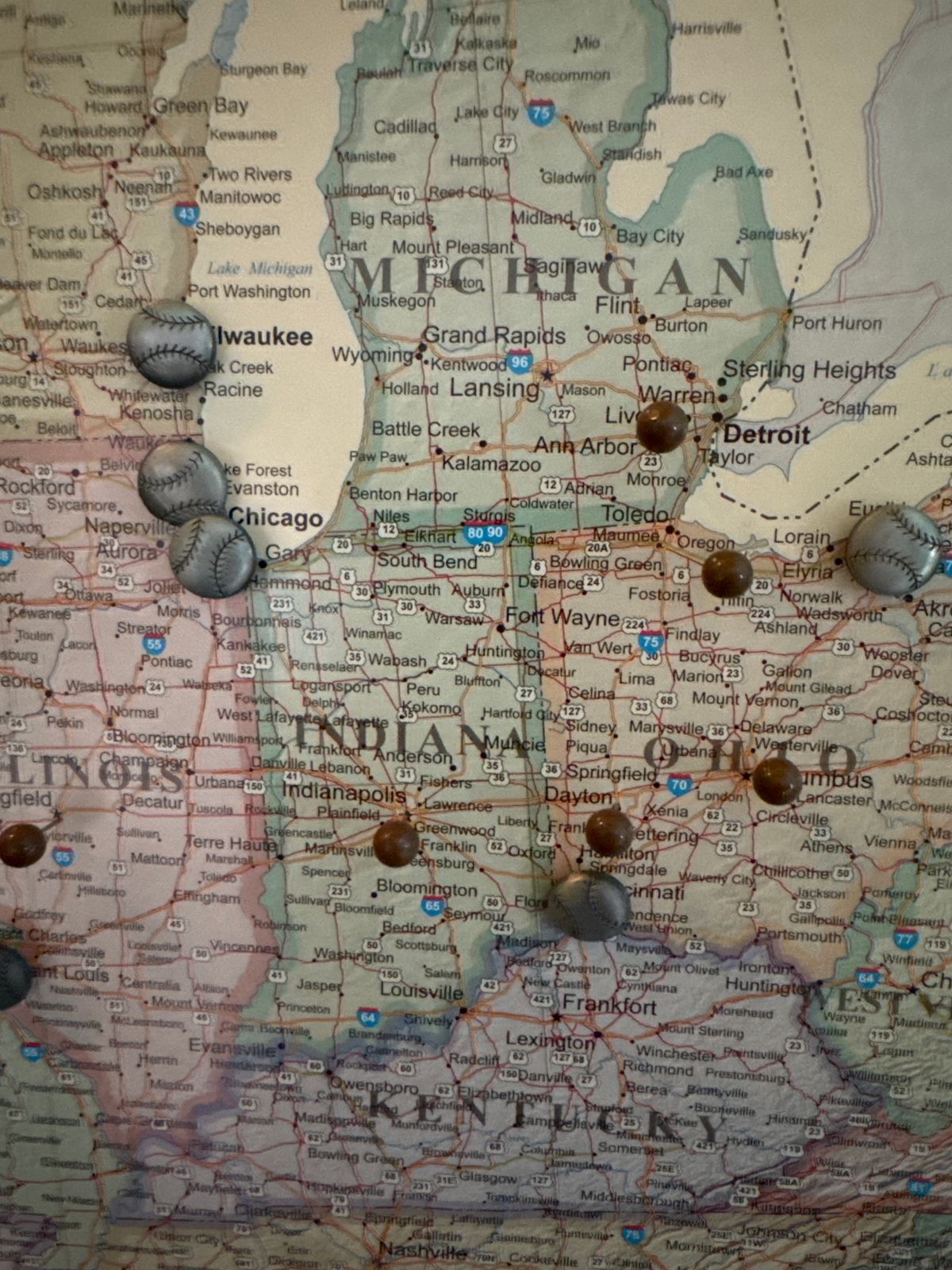 Our Flags of the United States push pins are perfect for showcasing which states you've visited! Set has 51 pins - all 50 USA state flags plus the District of Columbia. Flags are 3/8" in diameter and the gold push pin is 3/8" long to hold securely into your map. Pins arrive on a sturdy labeled foam board for easy identification and storage of pins not in use.