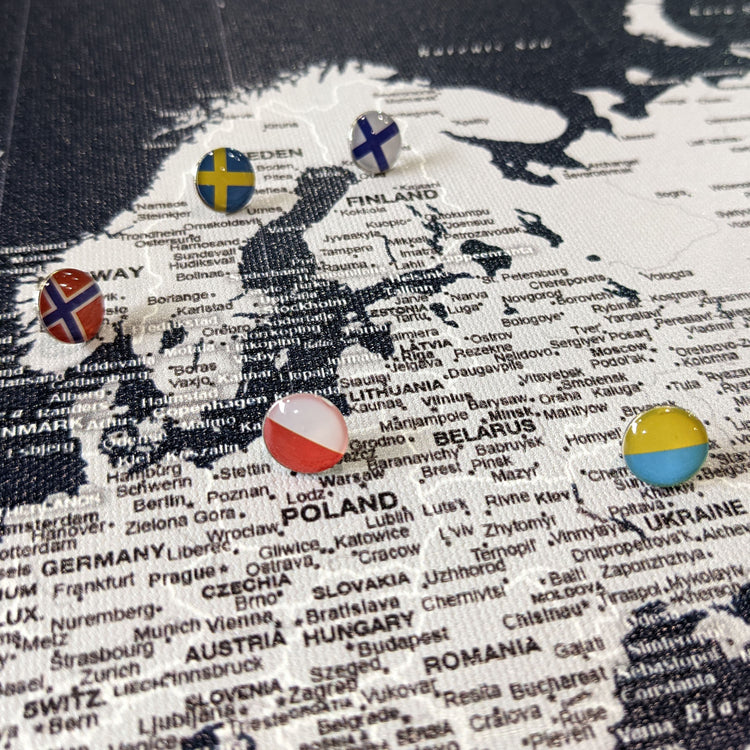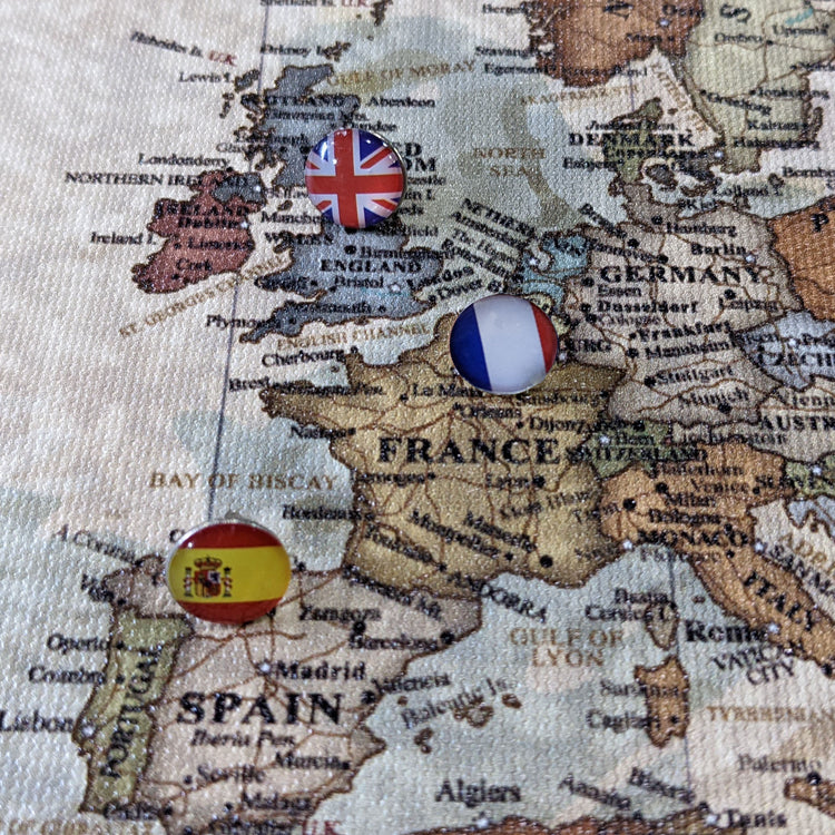 I use my map, the metal motorcycle, and colored, plastic pins to show my travels around the USA. My map is a focal point in our living space and I love the way folks are drawn to it and how it promotes conversations! I love my Holy Cow Map!!