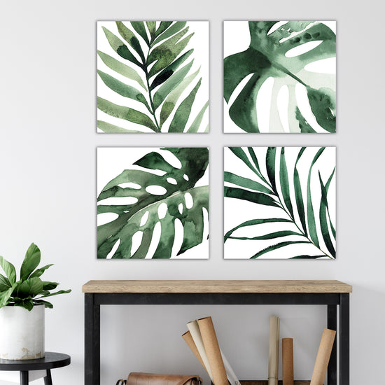 Square Watercolor Tropical Leaves Canvas Set- Regular price