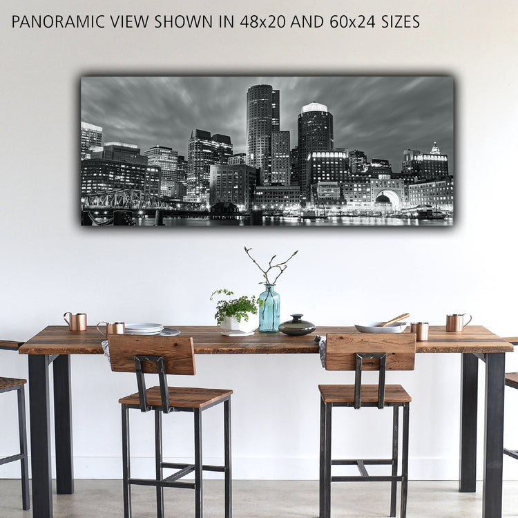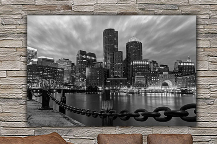 Boston Skyline on Canvas - shot from across Four Point Channel is hand stretched and ready to hang, makes a great statement on any large wall.