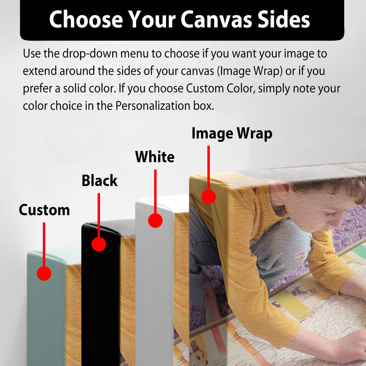 Use the drop-down menu to choose if you want your image to extend around the sides of your canvas (Image Wrap) or if you prefer a solid color. If you choose Custom Color, simply note your color choice in the Personalization box.