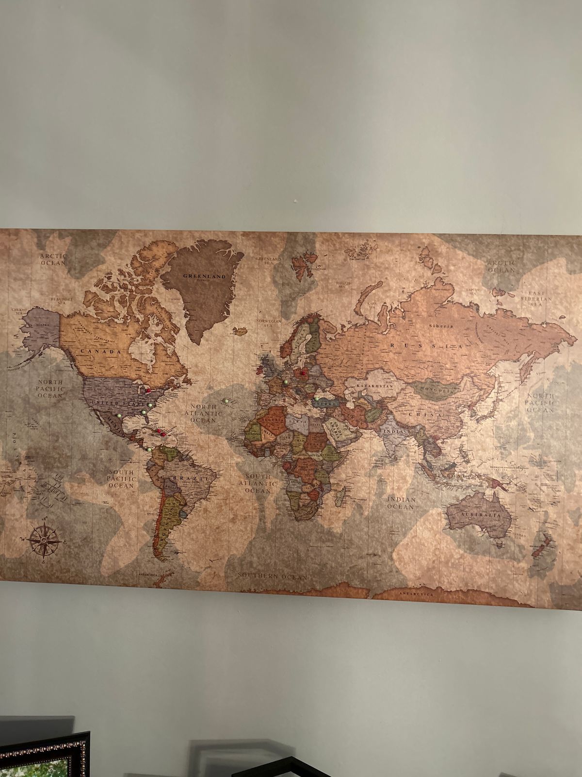 This map is made beautifully and perfect for “pinning places” you’ve been… it’s clear detailed and even has a little black dot for the pin to the country or town. I ordered the earth tone colors and it is really cool! My husband is thrilled and happy to be pinning both old and new places… oh and the customer service was tge best! Totally recommend. 5 stars for sure!