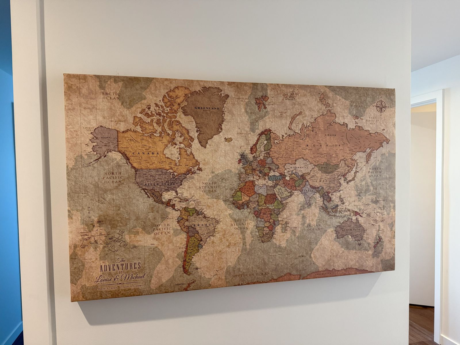 We love the wrapped framing that Holy Cow did for the travel map received as a birthday gift from my daughter. They were so easy to work with on describing my options and then I was pleasantly surprised by the quick timing of the return-process-ship-back-to-me. Up on the wall and ready to start pinning! Thank you!