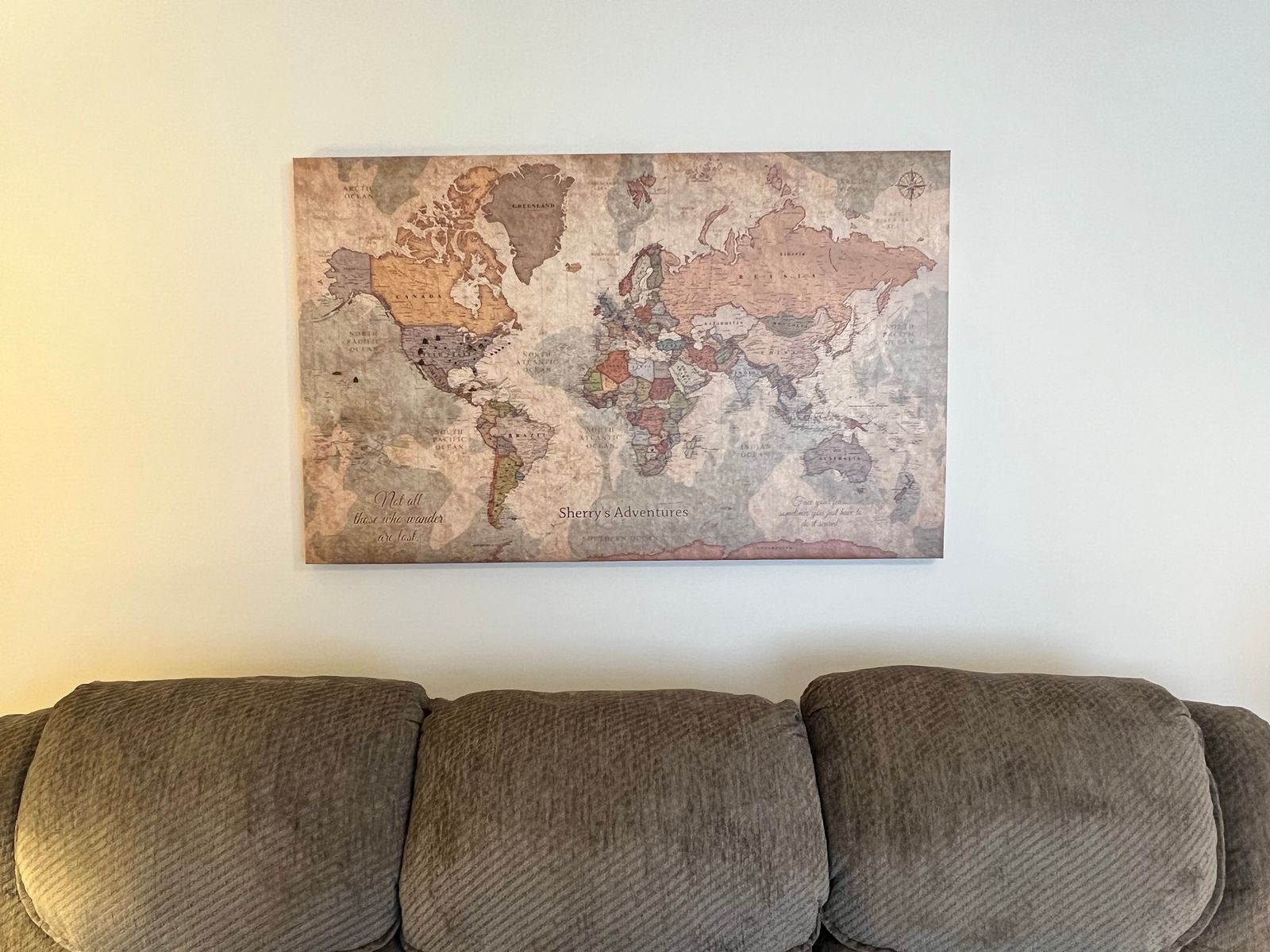 This map really changed the look of the one wall in the living room. And while it looks great, it also adds some fun and interest in looking at it to see where you’ve been and to plan where you’d like to go. The shopping experience was so easy peezy and they make sure that you’re happy with your personalizations. Highly recommend.