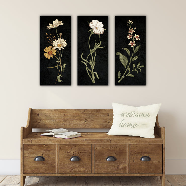 Vintage style illustrated flowers adaptable to traditional or modern interior design. Botanical prints of chamomile, agrostemma and croton. Choose an individual print or a set of 2 or 3. Prints are available in sizes from 10 to 48 inches wide!