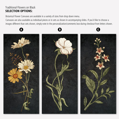 Vintage style illustrated flowers adaptable to traditional or modern interior design. Botanical prints of chamomile, agrostemma and croton. Choose an individual print or a set of 2 or 3. Prints are available in sizes from 10 to 48 inches wide!
