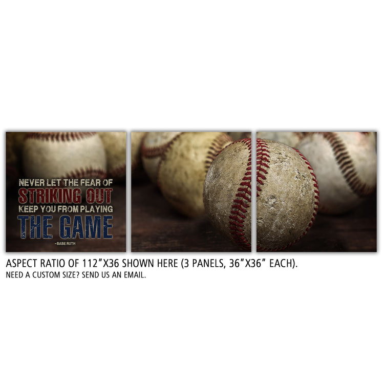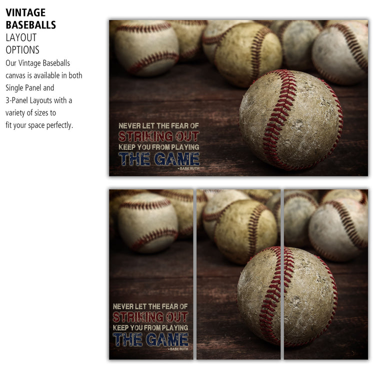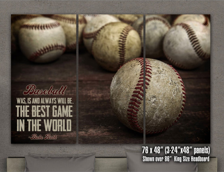 Great baseball decor option for any room. Vintage look can be used in a nursery, teen room or office. Largest size (as shown in main photo) is more than 6 ft. wide and 4 feet tall!