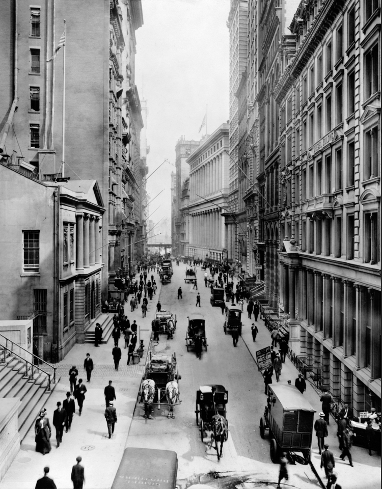 Vintage New York photos in very large or small formats at the turn of the century, circa 1905. Photos depict the New York Stock Exchange and the Chase Office Building, and Broad Street and street brokers in New York City.