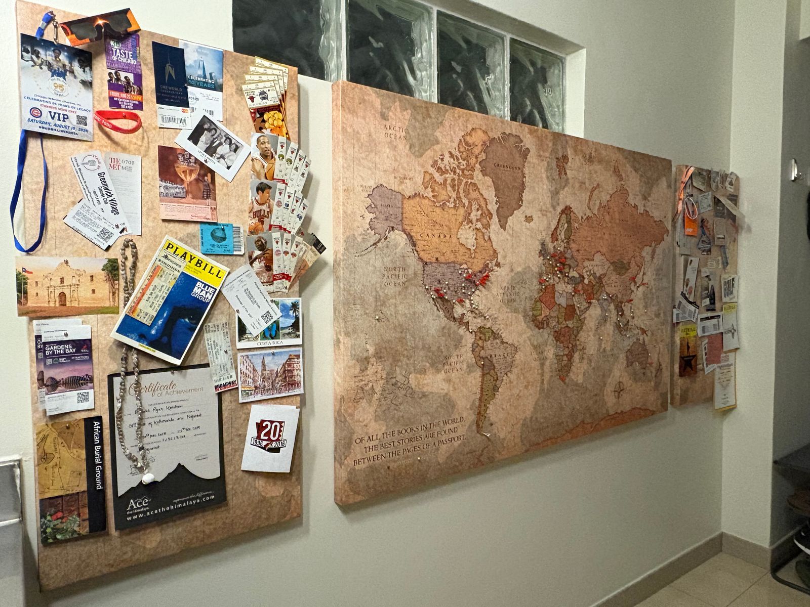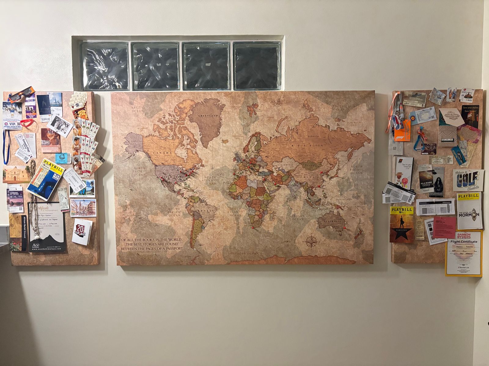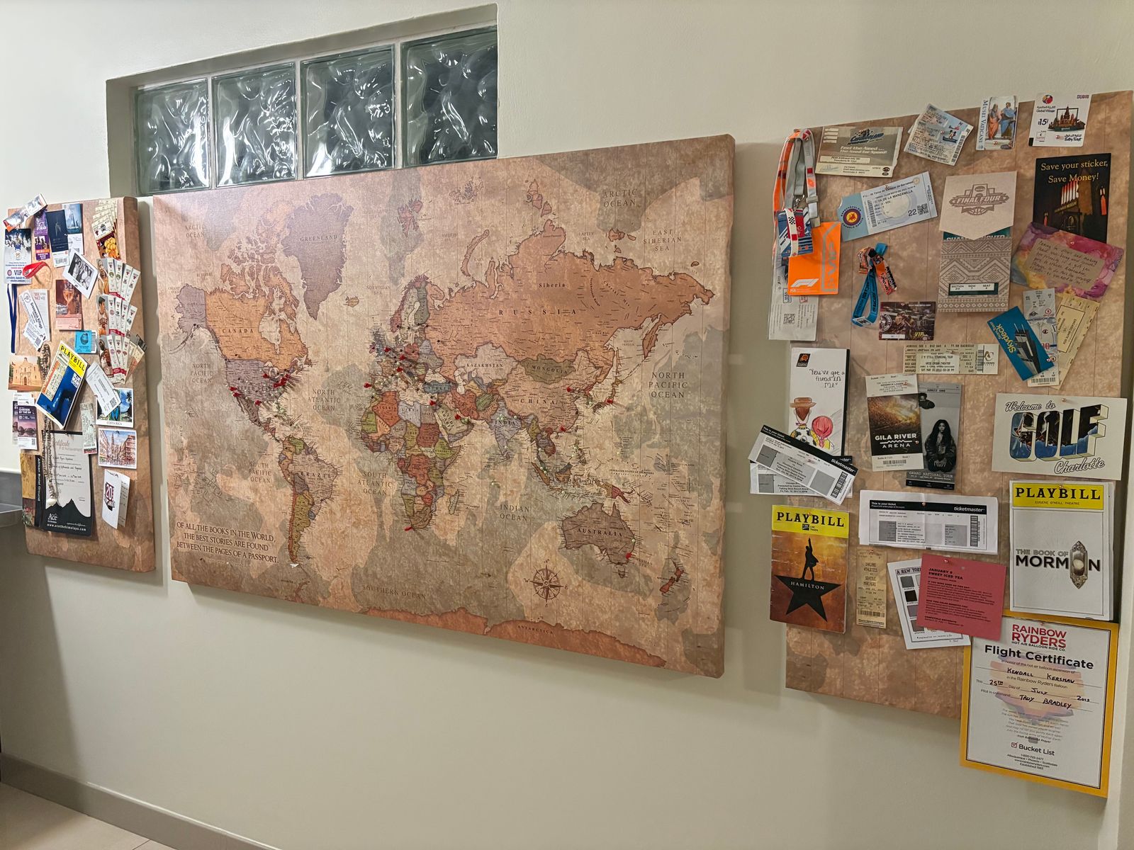 Two panel Color World Map on Gallery Wrapped Canvas makes a beautiful statement on any home or office wall. Map is circa 1700.